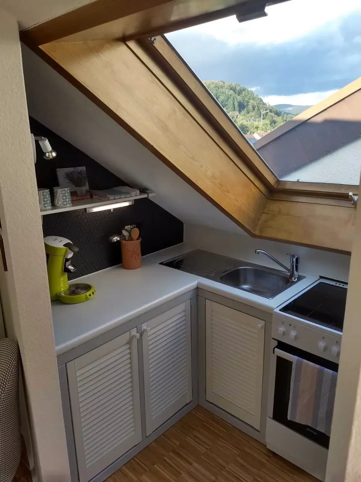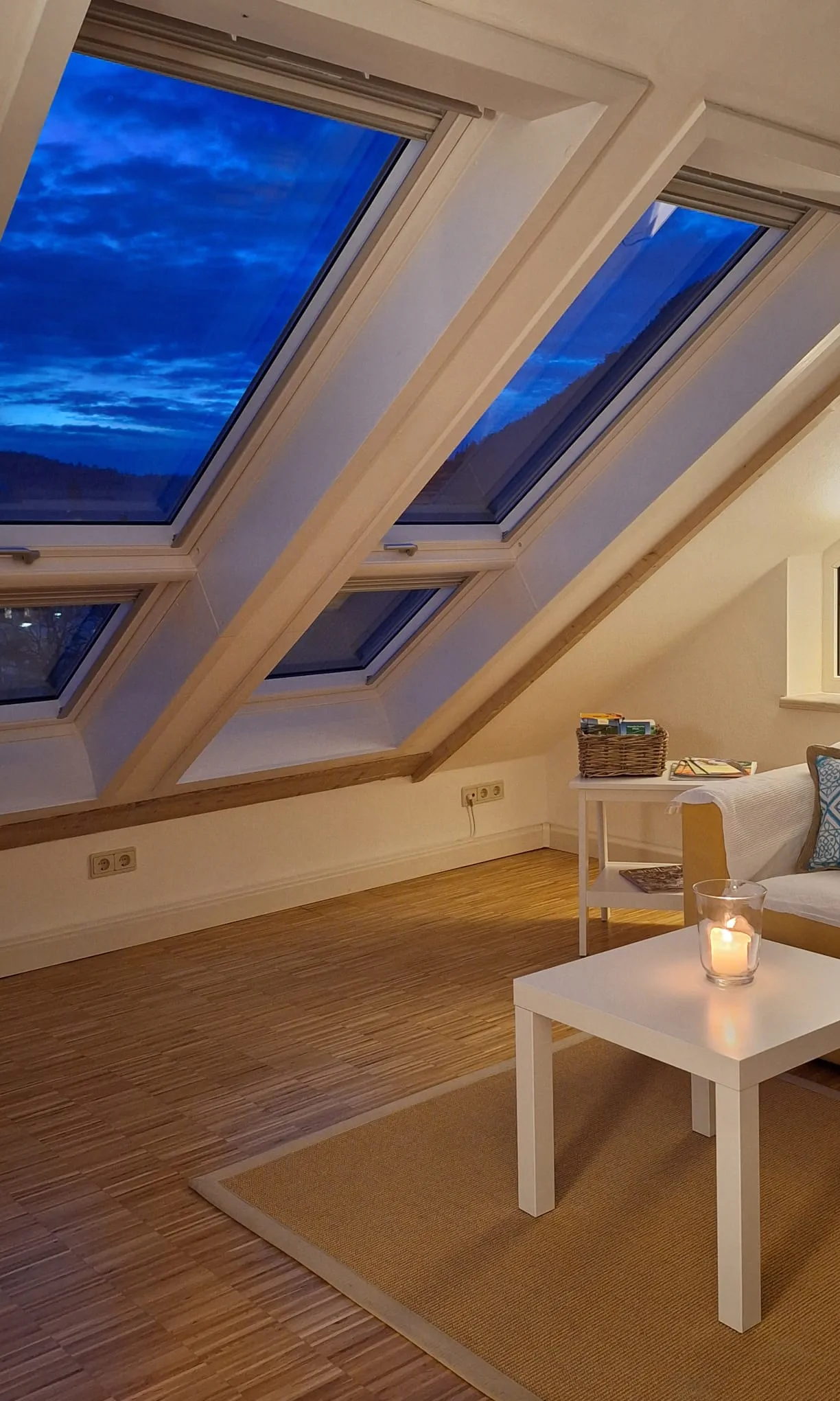 Das offene und individuell gestaltete Dachstudio bietet Platz für zwei Personen.