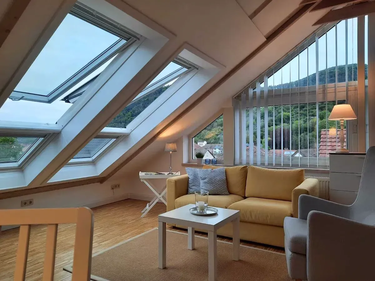 Unsere wunderschöne und beliebte Ferienwohnung befindet sich im Dachgeschoss und hat einen eigenen Zugang. Die Wohnung liegt zentral im schönen und alten Städtchen Annweiler am Trifels, am Rande des Pfälzer Waldes und direkt vor den malerischen Weinbergen der Südpfalz.